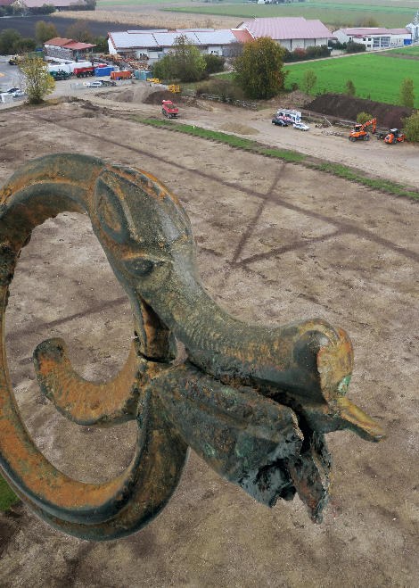 Einige ausgesuchte Fundstücke aus dieser Siedlung werden in der Ausstellung zu sehen sein. Darunter der ganz besondere, geheimnisvolle Fund eines keltischen Fabelwesens. Sowohl die Auswertung der Siedlungsstrukturen, als auch die der Fundstücke werden in den nächsten Jahren intensiv weitergehen.