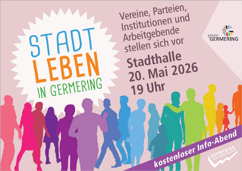Am Mittwoch, 20. Mai 2026, 19 Uhr, findet die Veranstaltung "STADTLEBEN in Germering" im Orlandosaal der Stadthalle Germering, Landsberger Str. 39, statt.