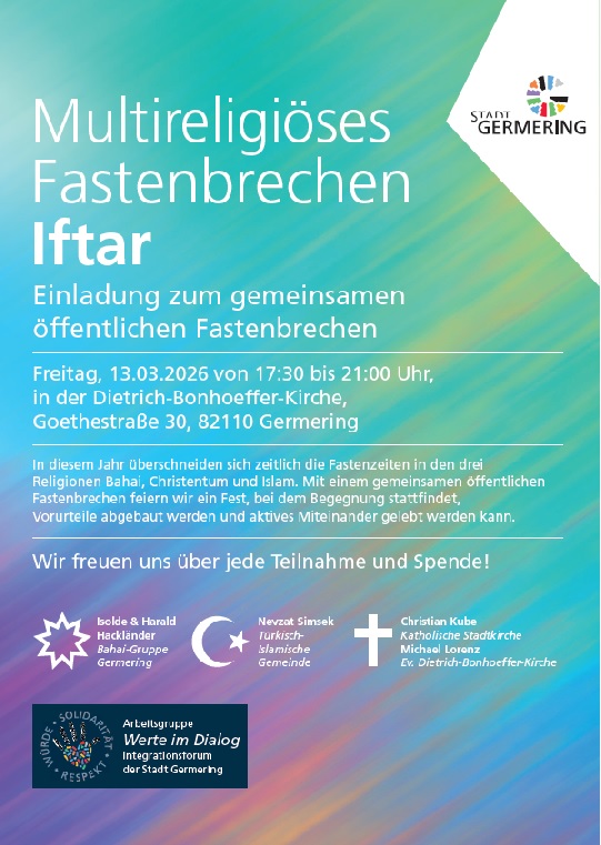 Wir sind eine bunt gemischte Gruppe von Germeringer*innen mit dem gemeinsamen Ziel, das Miteinander in unserer Stadt zu fördern, indem wir Menschen zusammenbringen. Im Zentrum unserer Arbeit stehen die gesellschaftlichen Werte Würde, Solidarität und Respekt. Gemeinsam mit Ihnen und Euch möchten wir dazu beitragen, diese Werte im Rahmen von regelmäßigen Treffen und Veranstaltungen tiefer in unserer Gemeinschaft zu verankern.