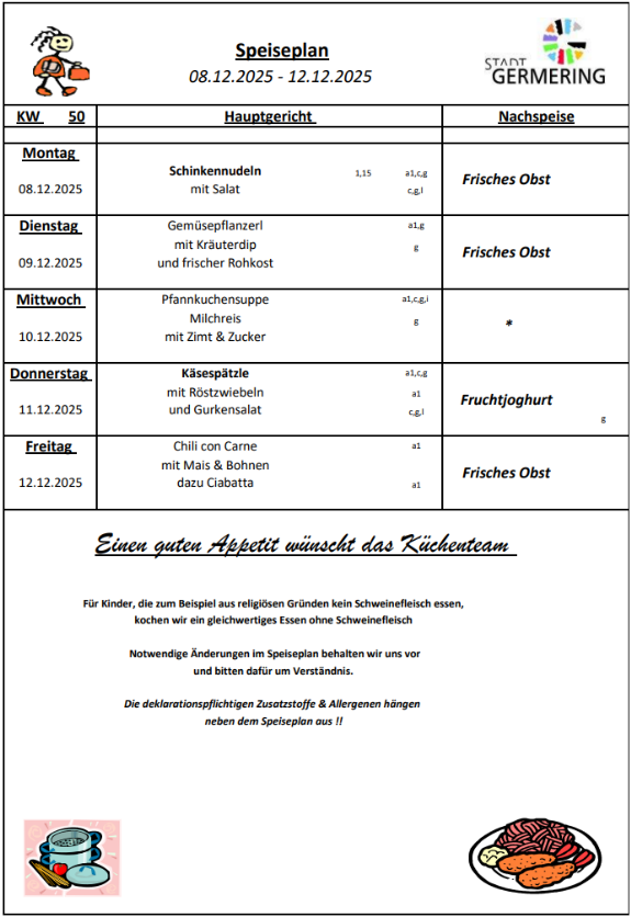 Der Speiseplan ändert sich jede Woche.