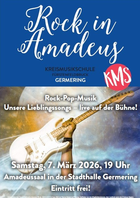 Die Musikschule Germering lädt zu einem besonderen Rpck-Pop-Abend mit Beats, Hits und Club-Feeling ein. Im Mittelpunkt steht eine Playlist aus handverlesenen Lieblingssongs, die von Rock-Klassikern bis zu aktuellen Pop-Größen reicht.