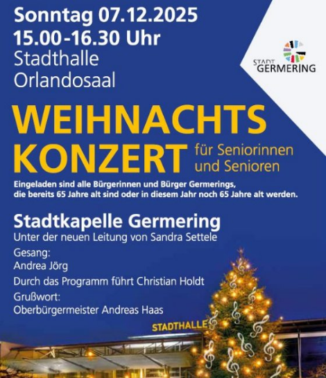 Stadt Germering freut sich auch in diesem Jahr wieder ein Weihnachtskonzert für Seniorinnen und Senioren anbieten zu können.